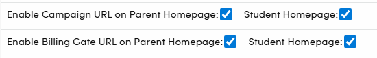 These settings control whether campaign and billing links are displayed in the Parent Portal and Student Portal, depending on the account type.