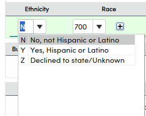 By adding a code to a field, a dropdown list will now display on the table for the field selected. For example, the ETH – Ethnicity field on the Student Data form will display a list of the codes and descriptions as displayed below.