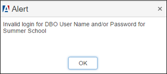 - The administrator performing the Copy Students into Summer Schools in the New Database will also need to enter the DBO User Name and DBO Password to be the copy process.