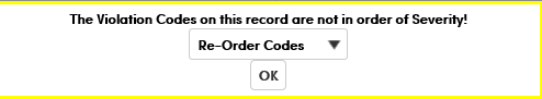 If Violation codes have been entered and are not in the correct Severity Level based on the Update Suspendable Offense Codes (SOC) records, the following message will display.
