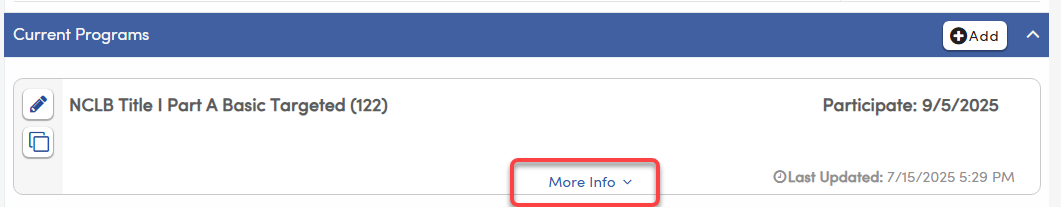 Click on the More Info button to view any additional fields that have data.
