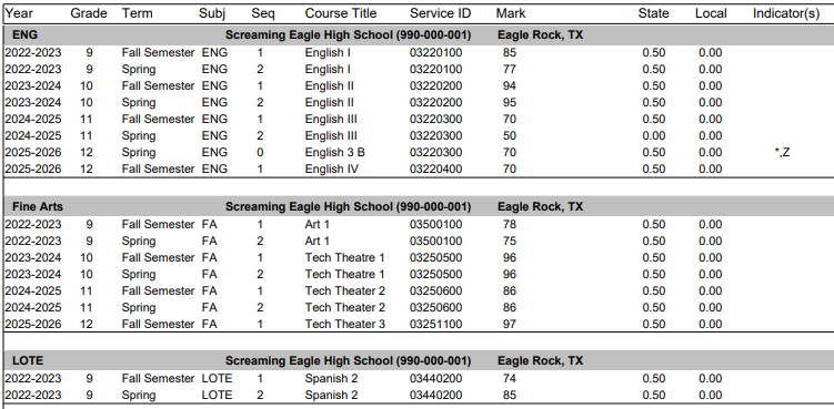 - Print State Course Code - Also prints the State Course Code (CRS.C3) in addition to the Course Number