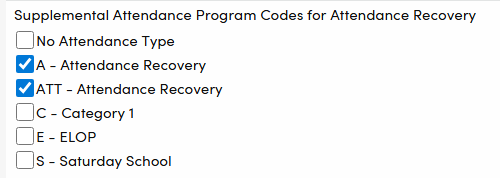 - Supplemental Attendance Type Codes (ATP.TY) Need at least one separate code to used only for AR. (Note this must be different than the code(s) your district will use for ELOP and Saturday School).