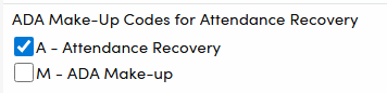 - Recovering Absences: Absences can be recovered using ADA Make-Up code(s) defined as AR. See ADA Make-up.
